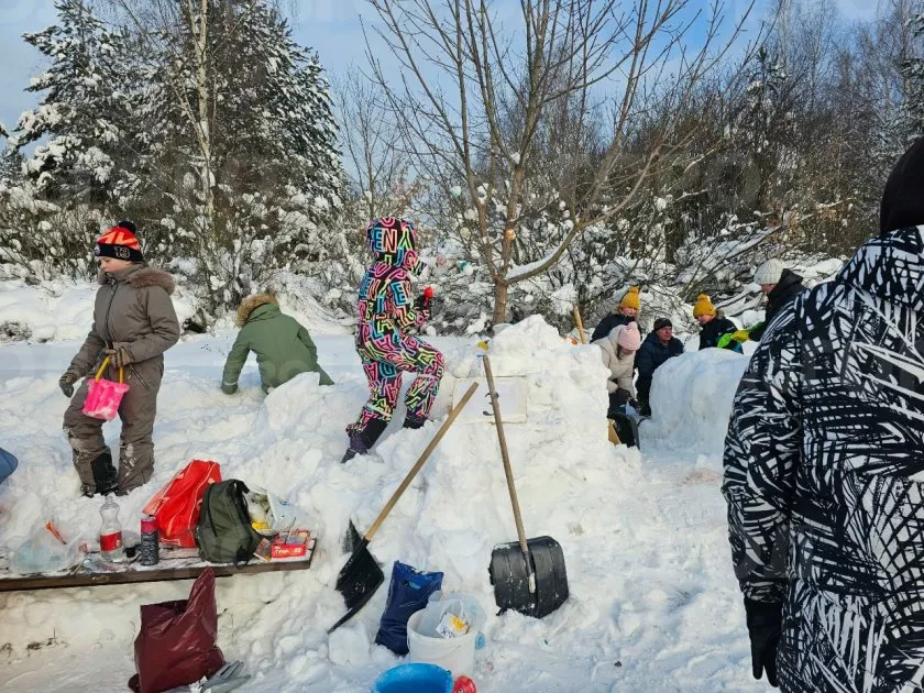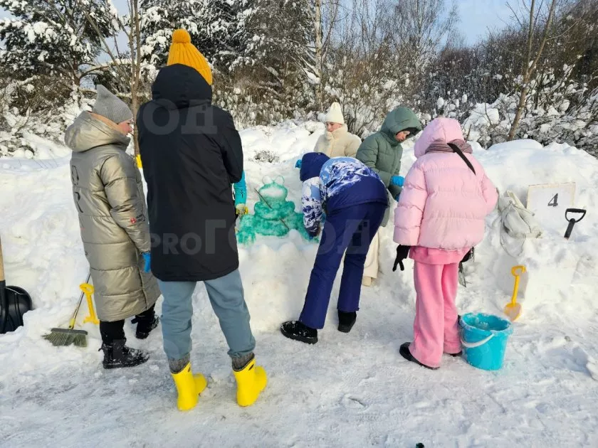 На улице Ожегова, 1, собрались пять команд, которые соревновались в лепке снежных фигур. Темой конкурса стали "Сказки народов России". Программа мероприятия включала в себя: