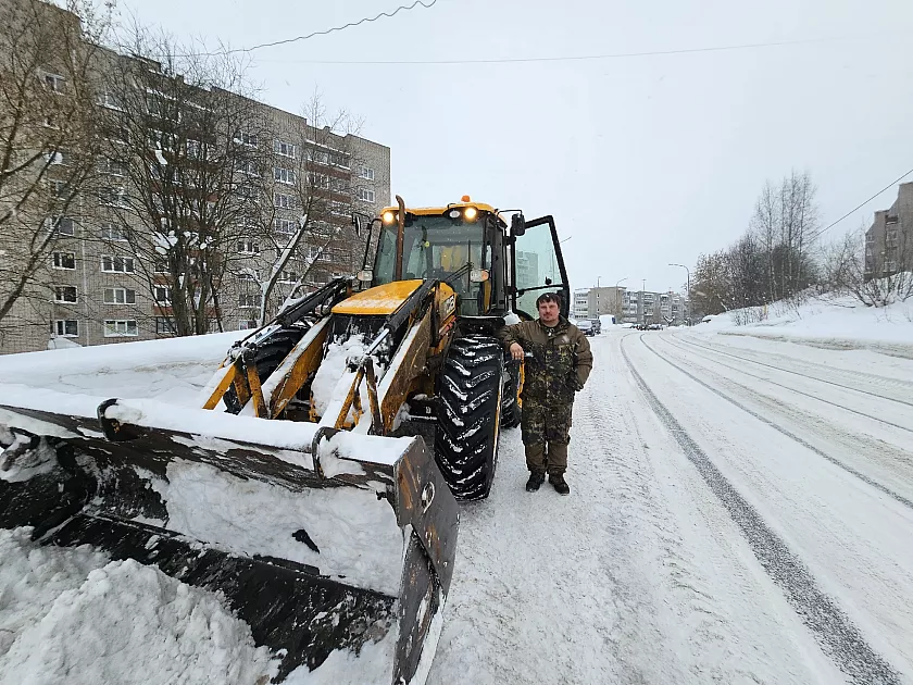 Работа глазами журналиста. Во время разговора с журналистом Сергей работал на улице Сосновой от Луначарского до Ленина по четной стороне. Дорога была забита машинами, что затрудняло уборку. Но Сергей на своей махине ловко объезжал авто и играючи огромным ковшом срезал слой снега.