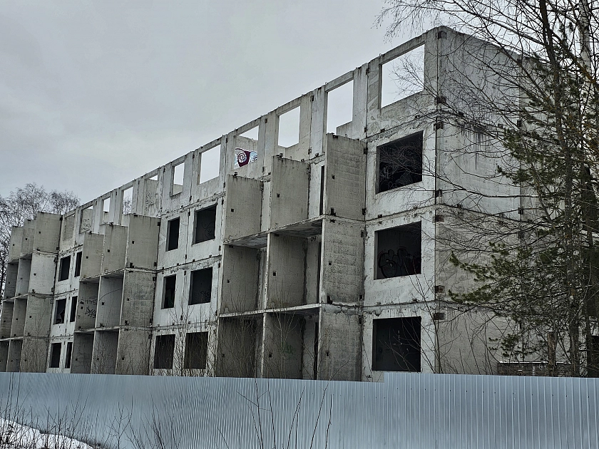 2. Недалеко от недостроя на улице Сергея Ожегова стоит еще одно здание, который оставили недостроенным еще 2019 году. Дом №2 на улица Воинской славы начали возводить еще в 2010 году. Проектом занимался местная строительная компания "КЧУС", однако из-за банкротства достроить дом не удалось.