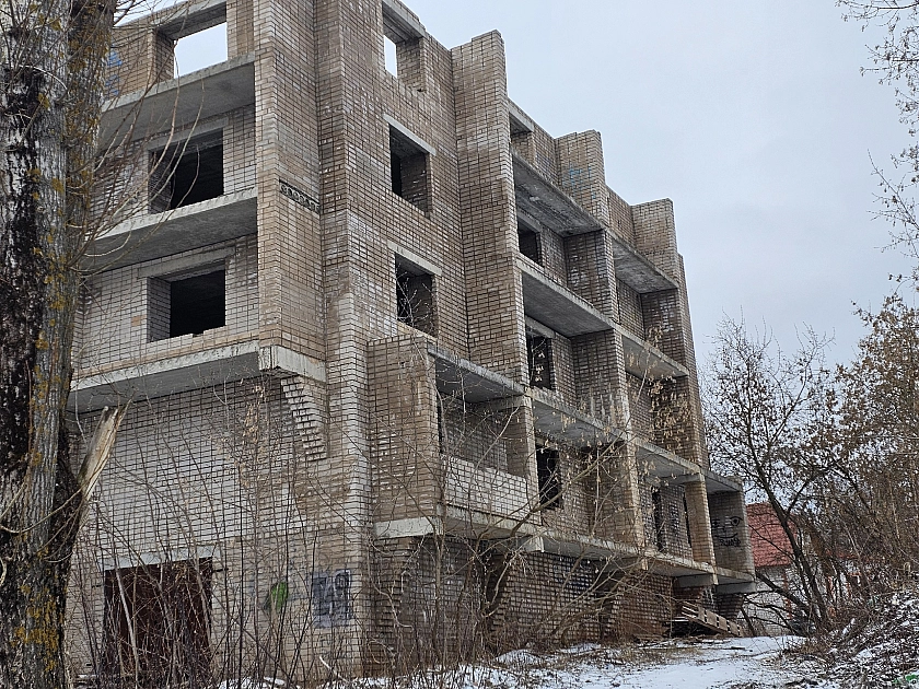 3. Четырехэтажный дом на участке по улице Жданова уже четверть века стоит без каких-либо намеков на работу строителей. В 2002 году объект передали в собственность физического лица, но никакого движения после этого не возникло. В 2020 году строение появилось на продаже с ценой в четыре миллиона рублей. Покупателя заманивали словами о высокой степени готовности объекта и сулят огромную прибыль, если достроить дом или перевести его в коммерческое назначение недвижимости.