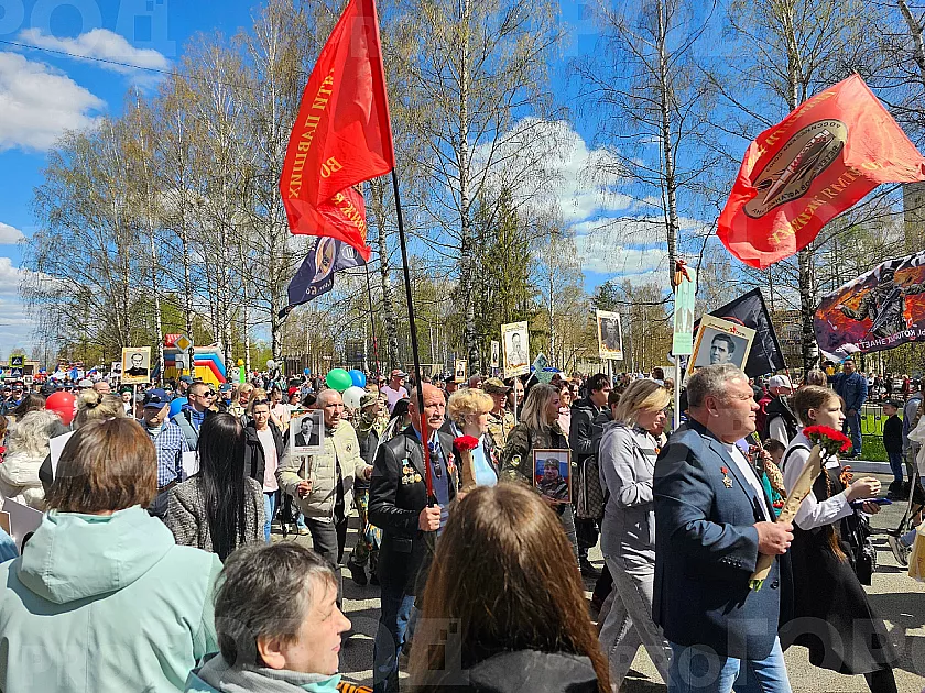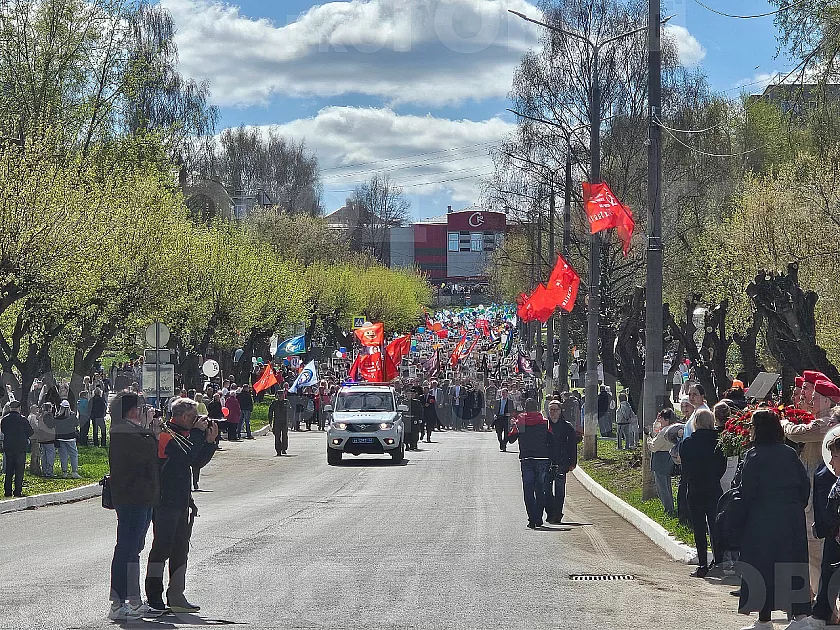 После прохождения парадных расчетов к праздничному шествию присоединились колонны Бессмертного полка, а также коллективы предприятий и организаций города.