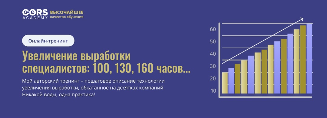 Для систематического подхода к повышению эффективности IT подразделения рекомендуем изучить авторскую технологию, представленную в онлайн-тренинге "Увеличение выработки IT специалистов" от CORS Academy.