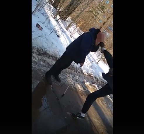 Двое школьников напали на прохожего мужчину, который шел с тростью. Видео с места происшествия появилось в группе "Подслушано Кирово-Чепецк".