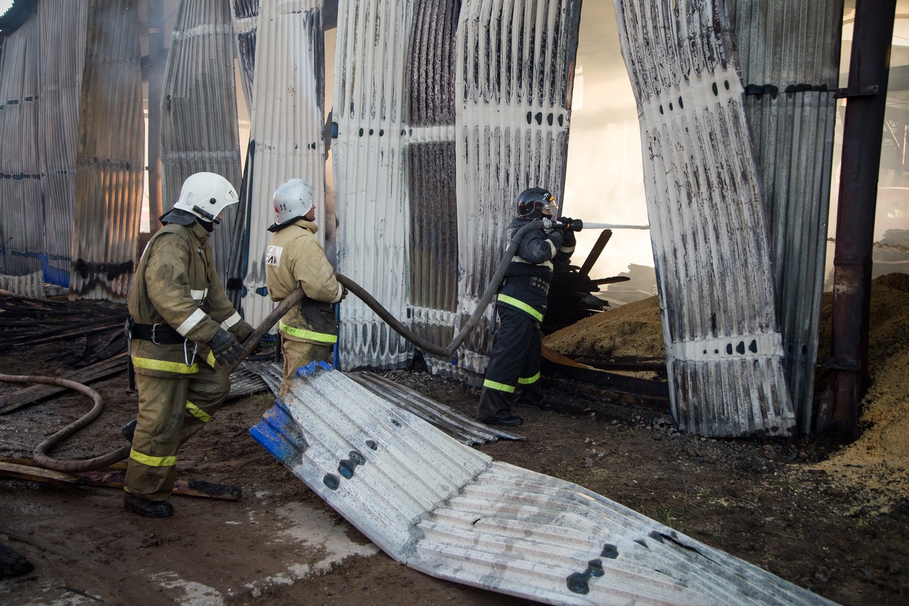 Пожар начался в 16:20 в цехе по производству пеллет. Пламя за несколько минут охватило металлический цех площадью 12 на 50 квадратных метров.