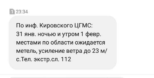 В понедельник, 1 февраля 2021 года, в Кирово-Чепецке и области возможен штормовой ветер. Его порывы могут достигать 23 метров в секунду. Об этом сообщает ГУ МЧС по Кировской области. Также в регионе прогнозируют метель.