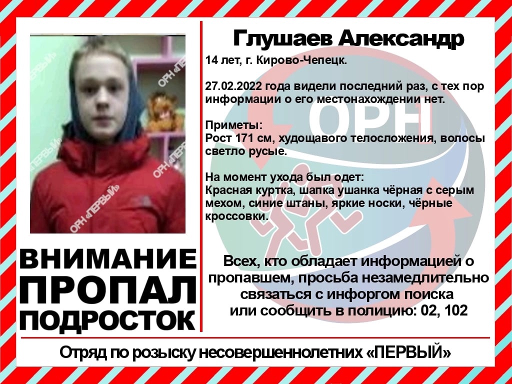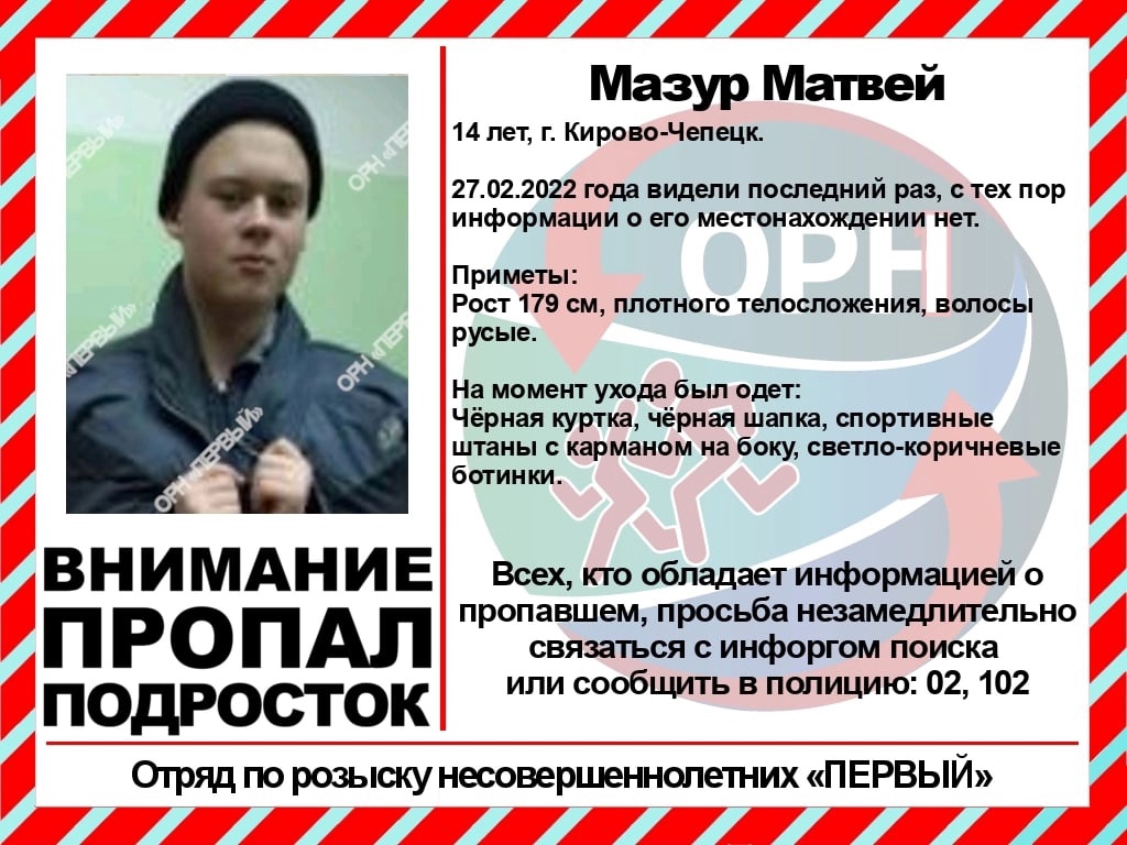 Если вам что-либо известно о пропавших, просьба незамедлительно связаться с инфоргами поиска Галина 89229566515, Ксения 89536835002. Отряд по розыску несовершеннолетних "Первый" осуществляет поиск совместно с отделом полиции "Кирово-Чепецкий", поэтому информацию можно сообщить также по телефонам 02 и 102.