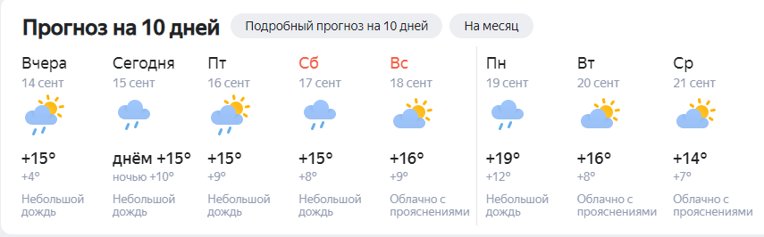 Жителей Кирово-Чепецка порадует бабье лето. Прогноз погоды опубликовали на портале yandex.ru/pogoda/kirovo-chepetsk.