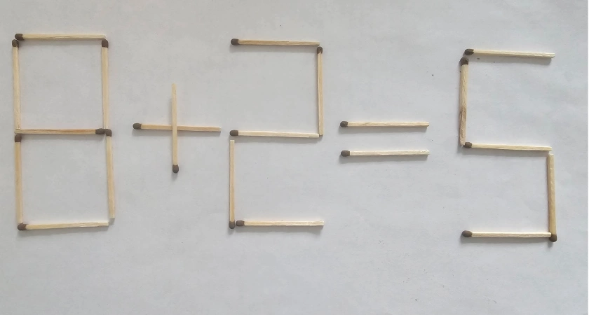 Сегодня мы предлагаем вам принять участие в захватывающей задаче со спичками! Перед вами интересное математическое уравнение: 8 + 2 = 5. На первый взгляд, оно кажется неверным и вызывает вопросы. Однако не торопитесь отказываться — у вас есть возможность исправить его, всего лишь переместив одну спичку.