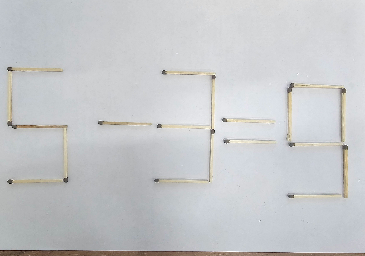 Представьте, что у вас есть 5 спичек, образующих цифру 5, 1 спичка, которая формирует цифру 3, и еще 1 спичка для знака равенства. Теперь важно задействовать свою фантазию и креативность. Данная головоломка призвана "разрушить" привычные схемы мышления и открыть альтернативные решения. Ваша цель — переместить всего две спички, чтобы сделать уравнение правильным.