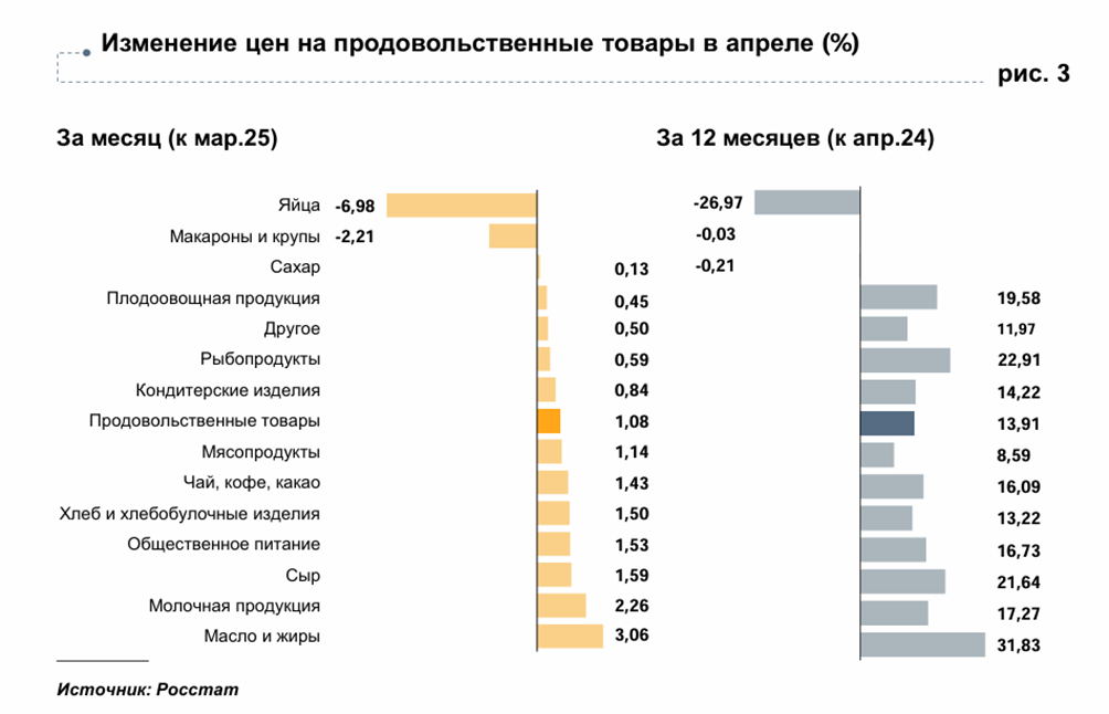 В Банке России рассказали, что в апреле 2025 года в Кировской области, как и во многих регионах РФ, наблюдался существенный рост цен на молочные и мясные продукты. Отмечается, что это спровоцировано увеличением издержек производителей на оплату труда, сырье и логистику. Среди лидеров по понижению цен вновь оказались яйца.