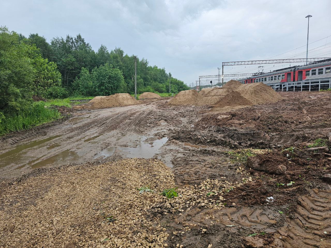 Папа, который впервые поехал на станцию Чепецкая в мае 2025 года, вспомнил, что тогда дорога была в плохом состоянии: глубокие ямы делали ее непроходимой для легковушек и автобусов. 16 июня дорога выглядела лучше: ямы засыпали, а дорогу выровняли гравием. Но у самой станции ждал сюрприз: кучи песка, разрытые участки земли и лужи. О разворотном круге пока не было и речи.