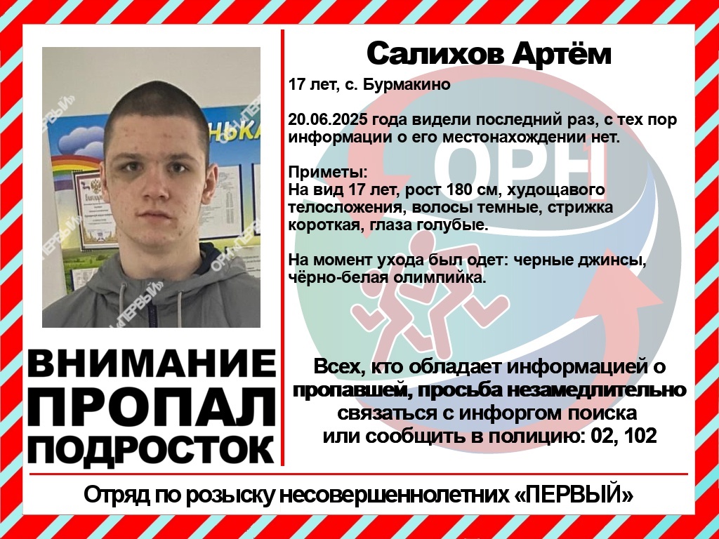 Последний раз его местоположение зафиксировано 20 июня 2025 года в селе Бурмакино, после чего какие-либо сведения о нем отсутствуют. Описание внешности: на вид 17 лет, рост 180 сантиметров, худощавого телосложения, волосы темные, стрижка короткая, глаза голубые.