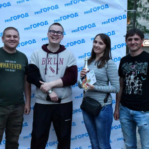В прошлый раз мы назывались “Торнадо”, но сейчас пополнили свой состав мужчиной, поэтому решили сменить название на “Один в Малиннике”. И вновь победили! Июньские задания оказались сложнее, но играть от этого было только интереснее. С нетерпением ждем следующих игр. Большое спасибо, что проводите такие мероприятия в нашем городе!