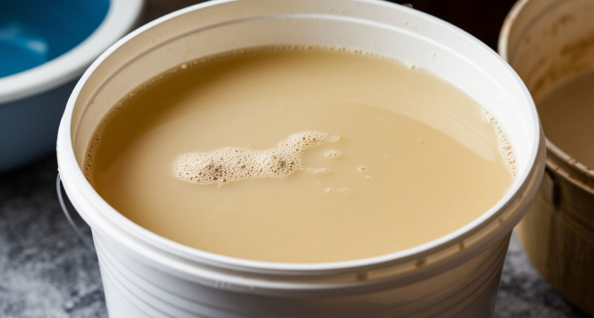 Для быстрого приготовления подкормки использую 10-литровое ведро. Заполняю его на треть хлебными остатками, добавляю 2-3 столовые ложки сахара и заливаю теплой водой. Важно поддерживать температуру 20-25 градусов для активного брожения. Через 3-5 дней появляется характерный кисловатый запах – значит, раствор готов к применению.