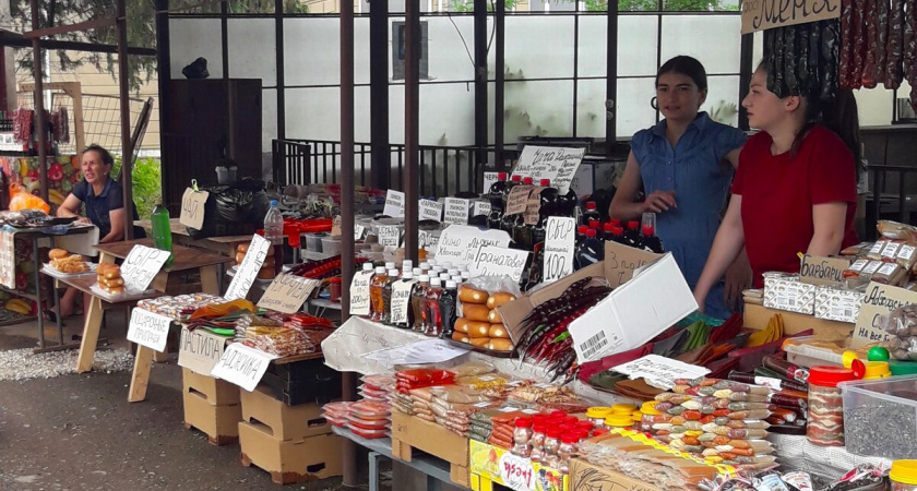 Учтите: большинство продуктов привозятся из России, что влияет на цены, особенно в высокий сезон.
