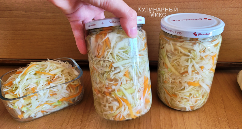 Главный плюс: достаточно выдержать только один час — и капуста готова. Если хочется более насыщенного вкуса, можно оставить дольше или поставить в холодильник. Хранить лучше в стеклянных банках с маринадом.