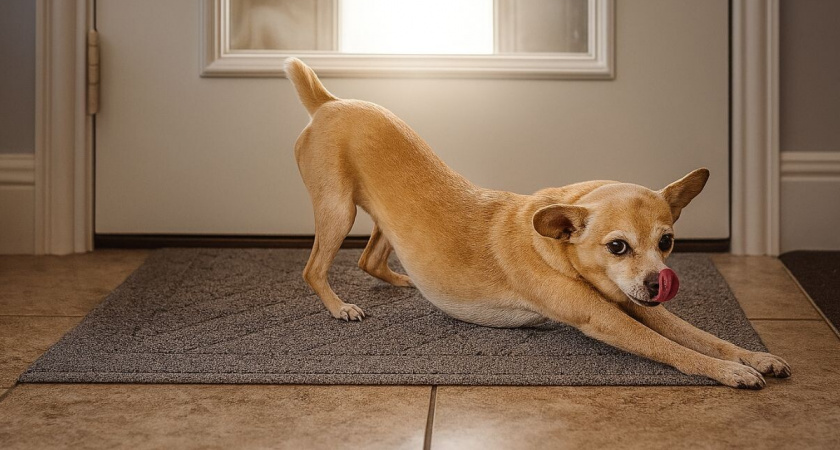 Приветственное потягивание появляется обычно после отдыха или перед встречей с хозяином. Лапы вытянуты, зад слегка поднят, хвост медленно машет. Такое поведение говорит о доверии и радости. Его длительность коротка — и за ним следует возвращение к привычному положению.