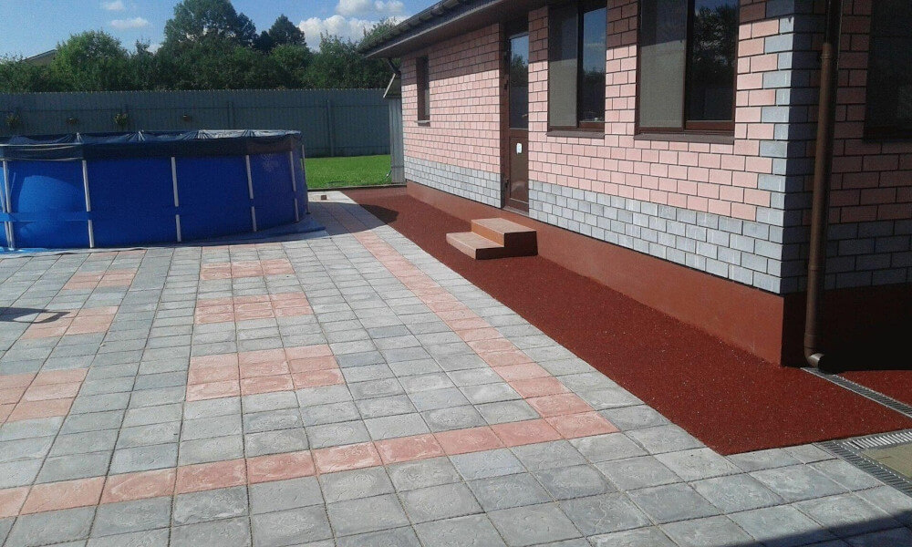 Резиновое покрытие отлично подходит для разных зон на даче: садовых дорожек, ступеней сооружений, мест возле калитки с «грязевыми» участками и даже площадок у детских уголков или бассейнов. Возможности очень широкие, а главное — покрытие долговечное и простое в уходе.