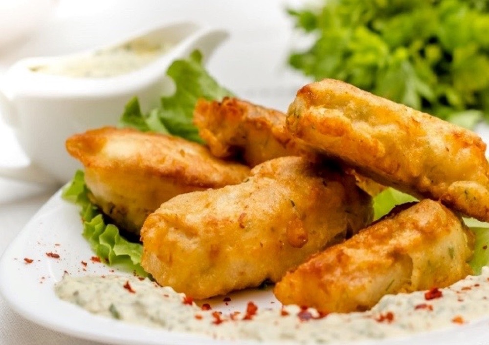 Потом обжаривают в раскалённом масле до хрустящей золотистой корочки. Такое блюдо великолепно сочетается с пивом или белым вином, а подать его можно с овощным гарниром и соусами на основе майонеза и йогурта с зеленью.
