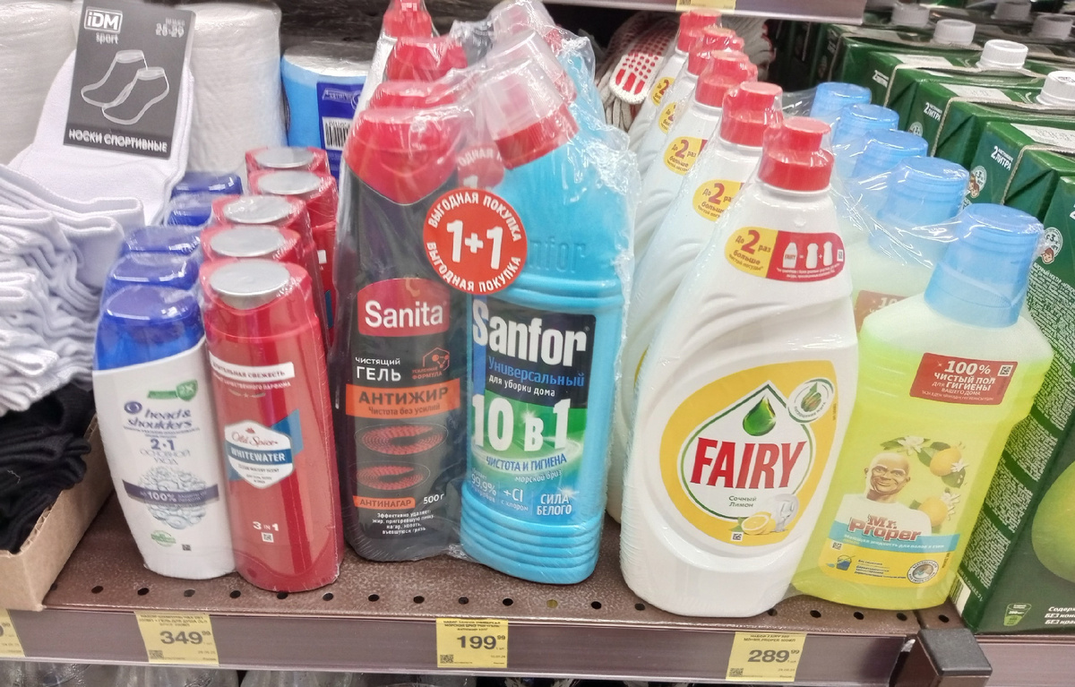 В сегменте бытовой химии появились новые наборы для уборки от проверенных брендов. Среди них — гель для чистки плит от «Sanita» и универсальное средство «Sanfor 10 в 1». Последнее стабильно остаётся любимым среди покупателей, хорошо справляется с известковым налётом и легко доступно по цене. Гель для плит помогает поддерживать чистоту, но «тяжёлые» загрязнения без дополнительного усилия не отстирает, зато справляется с остатками масла и жира.