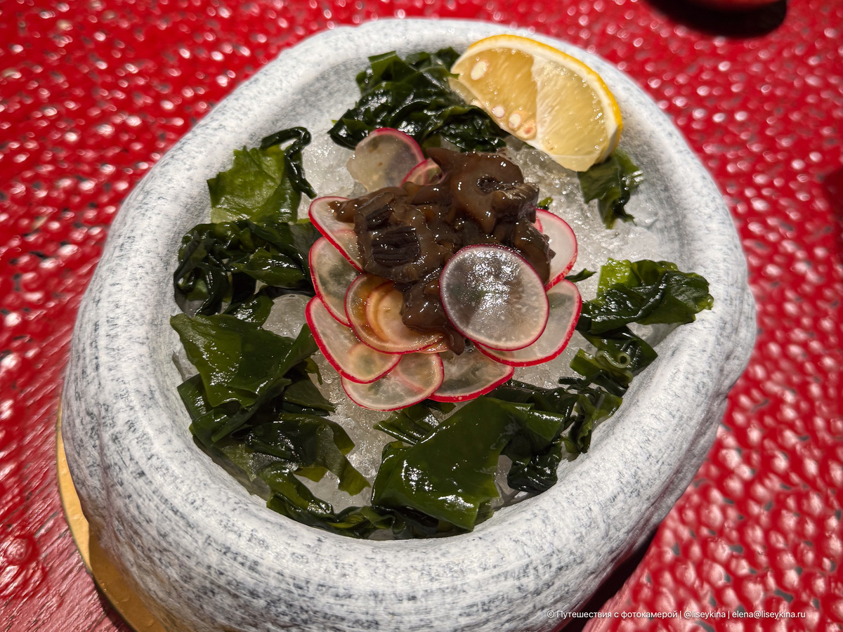 Блюда здесь подчас выглядят экзотично: на столе могут оказаться незнакомые моллюски, морские ежи с иголками, трепанги и алые напитки, похожие на кровь. Даже морские водоросли, привычные по салатам, здесь встречаются в незнакомых сочетаниях и удивляют новым вкусом, пишет автор Дзен-канала "Путешествия с фотокамерой".