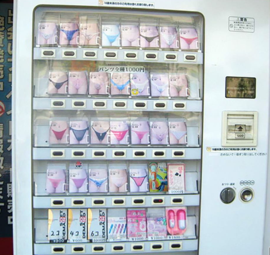 Одним из самых неожиданных мифов является история о продаже трусов в автоматах. Да, в прошлом японские автоматы действительно содержали ношеное нижнее бельё, что вызвало мировое удивление и негодование. Но этот «разврат» быстро пресекли — автоматы закрыли, и сегодня такого уже нет.