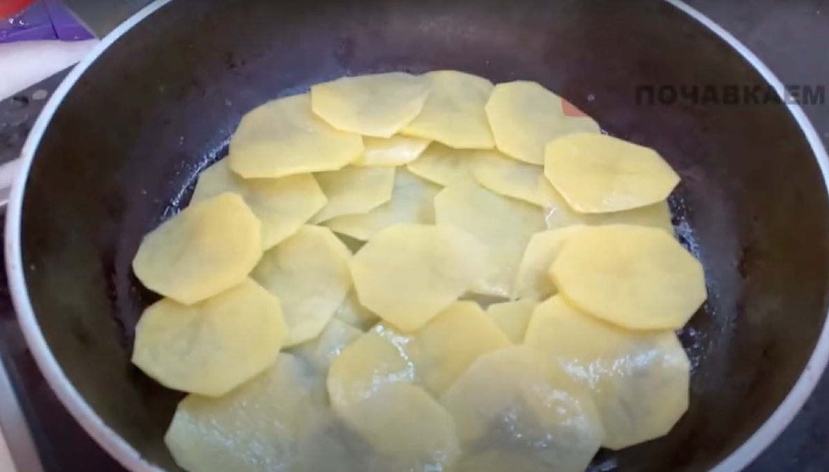 Первым шагом становится подготовка основных продуктов. Картофель тщательно моют, очищают от кожуры и нарезают очень тонкими ломтиками — тонкие срезы обеспечивают равномерное и быстрое приготовление. Чтобы избежать чрезмерной клейкости и убрать излишки крахмала, картофель промывают в холодной воде.