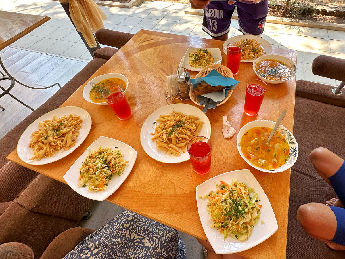Питание в гостевом доме обошлось в 3050 рублей, включая завтраки (1250 рублей за два раза, с корректировкой количества порций), обед (900 рублей) и ужин (900 рублей).