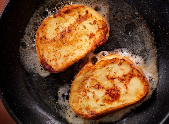 Готовить гренки рекомендуют в хорошо разогретом масле: сливочном для мягких, пышных и нежных внутри, подсолнечном — для более хрустящей, румяной корочки. Важно не перегревать сковороду, чтобы масло не начало гореть и не придавало неприятного вкуса. Жарка ведётся на среднем огне с обеих сторон до аппетитного золотистого цвета.