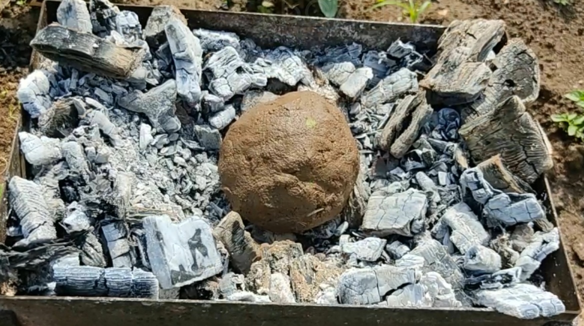 Обмазка яйца влажной глиняной землёй создаёт защитный слой, позволяющий готовить в тепле углей без повреждений.
