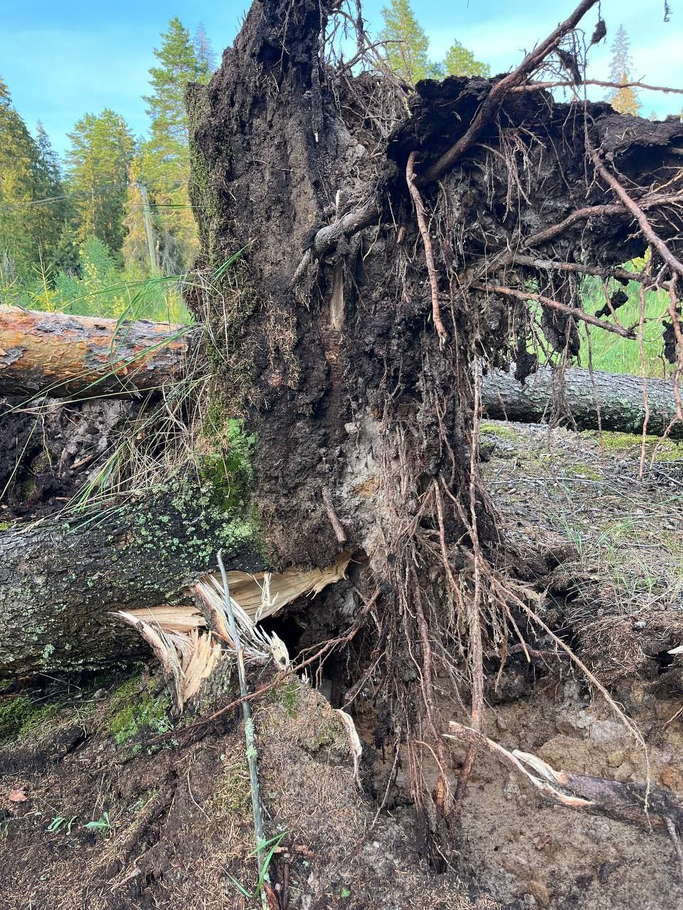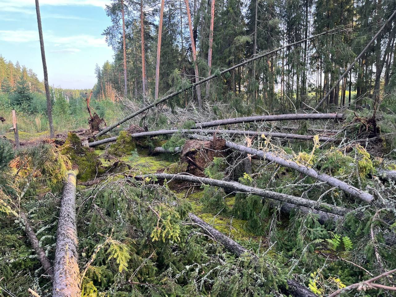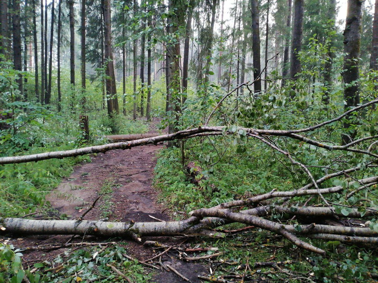 Сильный ветер вырвал с корнями деревья на берегу реки Быстрица и территории Симаковского карьера в Пасеговском сельском поселении.