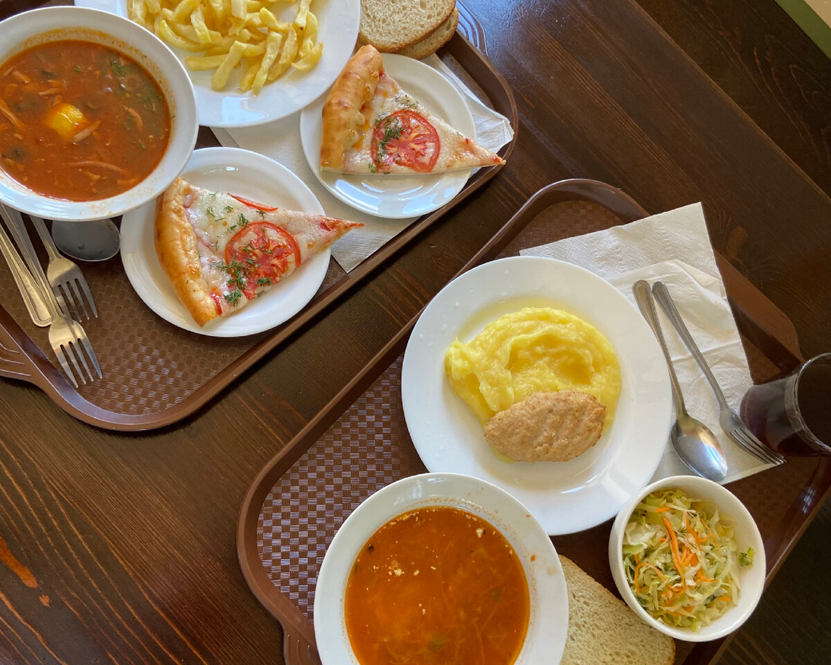 При заказе в столовой подают стандартные для региона блюда: от классического борща и солянки до пиццы и картофеля фри. Родители отметили, что супы оказались вкусными и горячими, что не банально для общественного питания у моря. Дети с удовольствием поели пиццу и картофель, а также проявили интерес к салату.