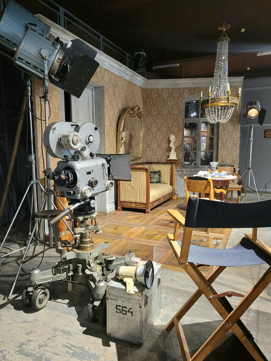 Территория киностудии огромна — 17 павильонов разного размера, впечатляющих масштабом: некоторые позволяют разместить полноценный пятиэтажный дом внутри. Настоящей находкой стала экскурсия в киногородок с воссозданными старинными улицами дореволюционной Москвы и Петербурга. Хотя такие локации нередко закрываются во время съемок, гостям повезло посетить их в свободное время.
