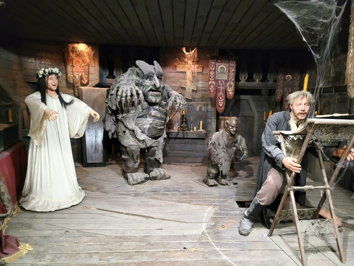 В конце экскурсии можно увидеть музейную экспозицию с техникой разных эпох — от старых телефонов до калькуляторов — и коллекцией наград студии, включая престижные международные призы. Яркое впечатление оставили аниматронные восковые фигуры героев советского фильма «Вий», которые словно оживают прямо на глазах.