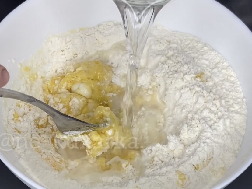 Ключ к успеху – правильно замешанное тесто. В рецепте используется яйцо, слегка взбитое с солью, и растительное масло. Всё это добавляется к просеянной муке, после чего постепенно вливается стакан кипятка. Важно вливать воду постепенно, чтобы тесто получилось ровным и упругим.