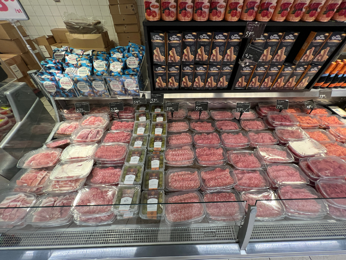 Ассортимент колбас и мясных закусок радует разнообразием и ценами от 200 до 500 рублей, что сопоставимо с российскими ценами. Особо отмечены прошутто и салями, традиционные деликатесы, которые в Швеции стоят не больше, а порой даже дешевле, чем у нас.