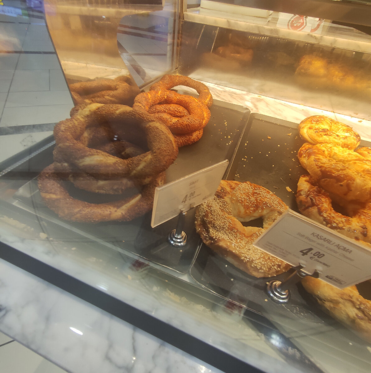 Что касается сухих перекусов, то традиционные турецкие симиты подешевле не будут — 4 евро за штуку. Вопрос — насколько свежи эти изделия, учитывая возможное долгое хранение на витрине.