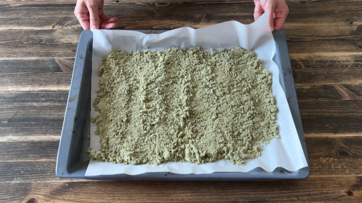 Масса после измельчения остаётся влажной из-за сока зелени, поэтому её необходимо вылечить в электросушилке или духовке. При сушке важно равномерно распределить смесь тонким слоем на противне, застеленном бумагой для выпечки, и выдерживать при температуре около 50 °C с использованием режима конвекции. Сушка занимает от 2 до 4 часов в зависимости от количества и сочности исходных ингредиентов.