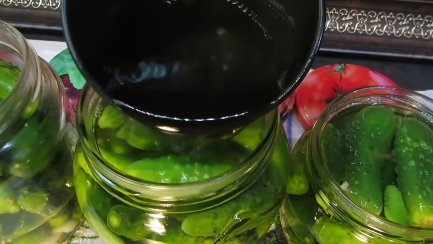 Опыт и советы тещи привели к разработке маринада, который надёжно сохраняет огурцы хрустящими до мая. Для трехлитровой банки используются простые продукты: 2 столовые ложки соли, 4 — сахара, 3 — 9%-го уксуса. В специи входят лавровый лист, 5 горошин чёрного перца, половина чайной ложки горчицы в зернах и чуть кориандра.