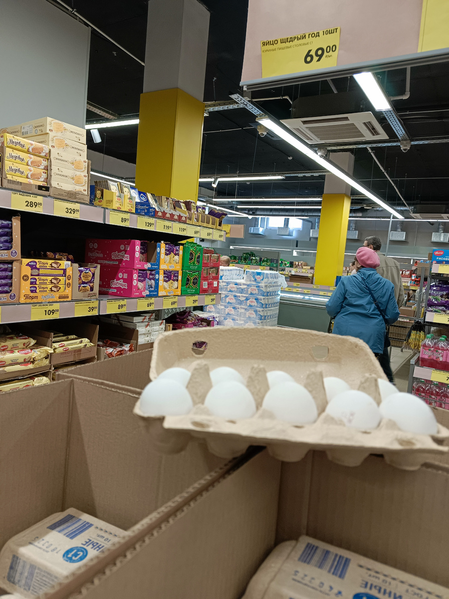 Куриные яйца категории С1 по 10 штук стоят 69 рублей и всегда радуют свежестью и качеством.
