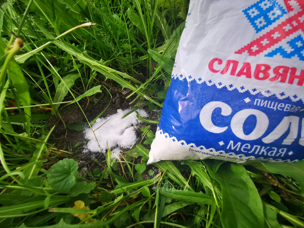Чтобы минимизировать вред для почвы, соль наносят строго на срезы, стараясь не рассыпать большое количество на землю, ведь её накопление способствует засолению грунта. Если опасения по поводу соли велики, можно использовать хлористый калий — он обеспечивает эффект не хуже, но стоит дороже.
