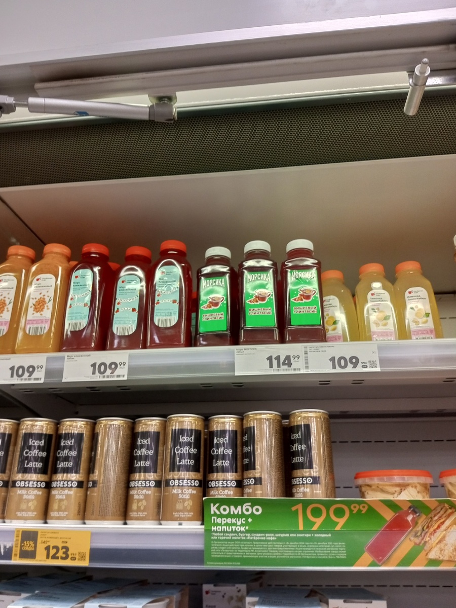 Любят покупатели и морсы — натуральные, не слишком сладкие напитки с ягодным вкусом. Многие теперь предпочитают их обычным лимонадам. Качество на уровне, хотя цена выше, чем у газировки.