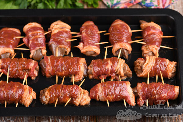Закуска с куриной печенью в беконе: пикантность с хрустящей ноткой