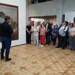 Вятский художественный музей стал площадкой для особого диалога об искусстве и памяти, пишет пресс-центр Правительства Кировской области. В рамках XX Всероссийского Васнецовского пленэра художники Валерий Мокрушин, Василий Кукурса и Сергей Трошин провели для посетителей экскурсию по выставке "Грековцы. Под знаменем Победы" (6+). Они делились не только профессиональными познаниями о батальной живописи. Творцы рассказали о том, как искусство сохраняет историческую правду и человеческие судьбы.
