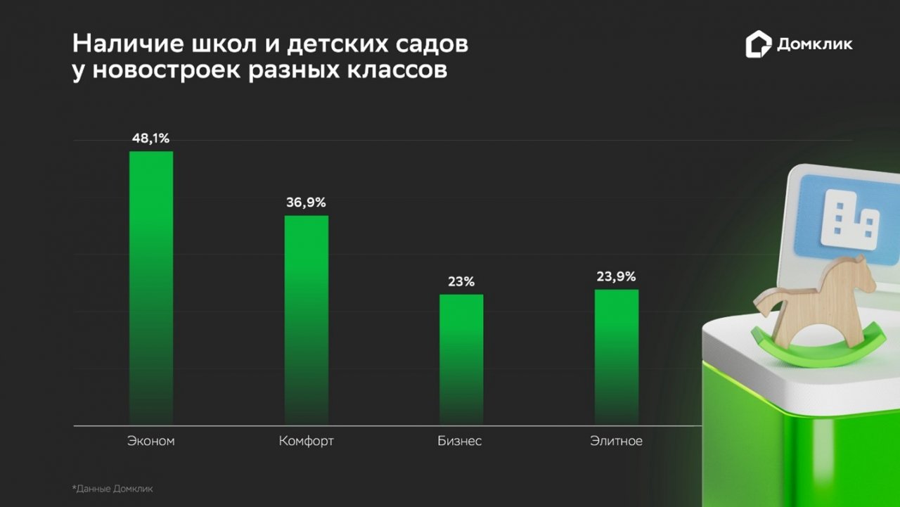 Исследование Домклик: более четверти новостроек обеспечены собственными школами и детскими садами