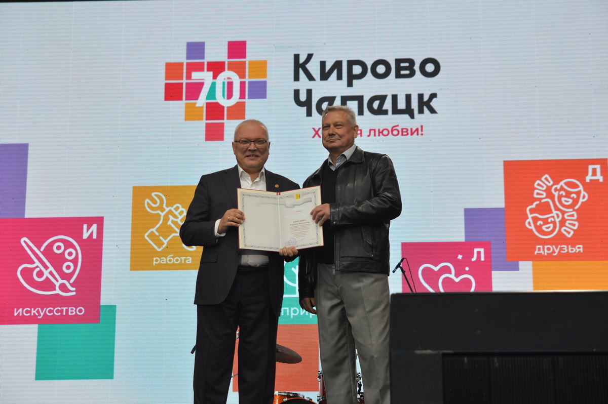 На главной сцене праздника наградили лучших сотрудников предприятий города. Губернатор Кировской области Александр Соколов вручил благодарственное письмо аппаратчику синтеза производства аммиака филиала Николаю Плюснину за значительный вклад в развитие химической промышленности региона.