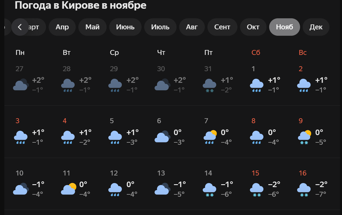 Стало известно, каким будет ноябрь в Кировской области