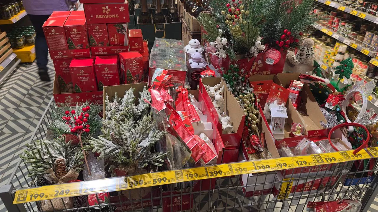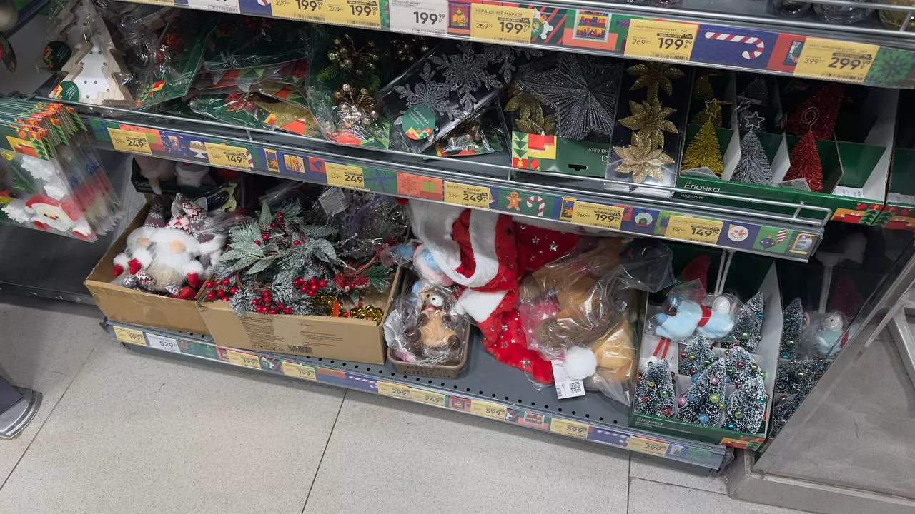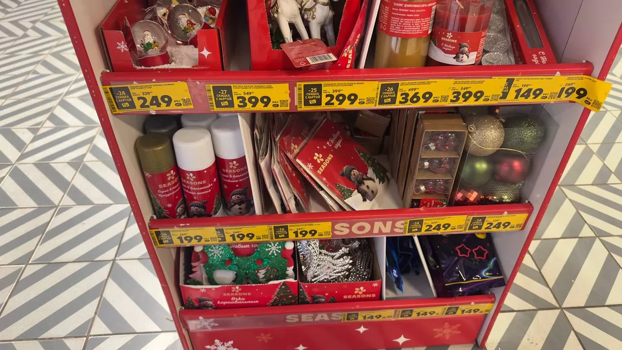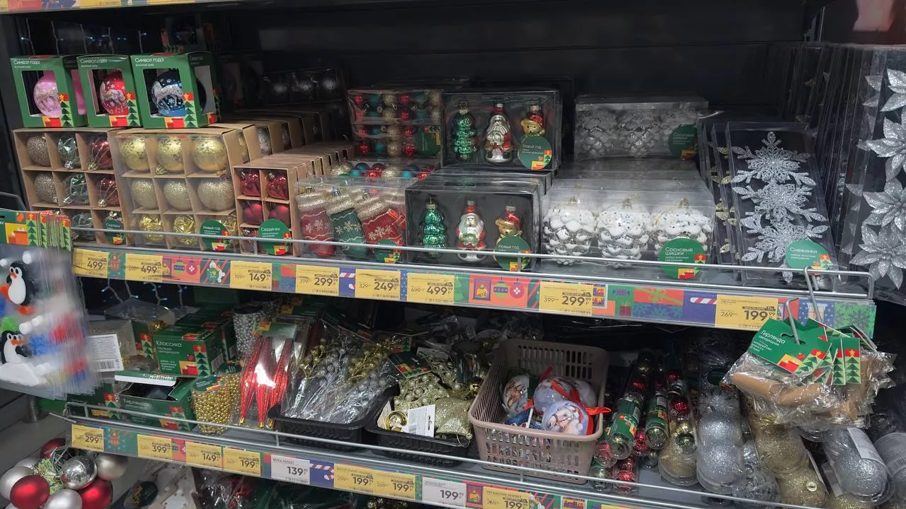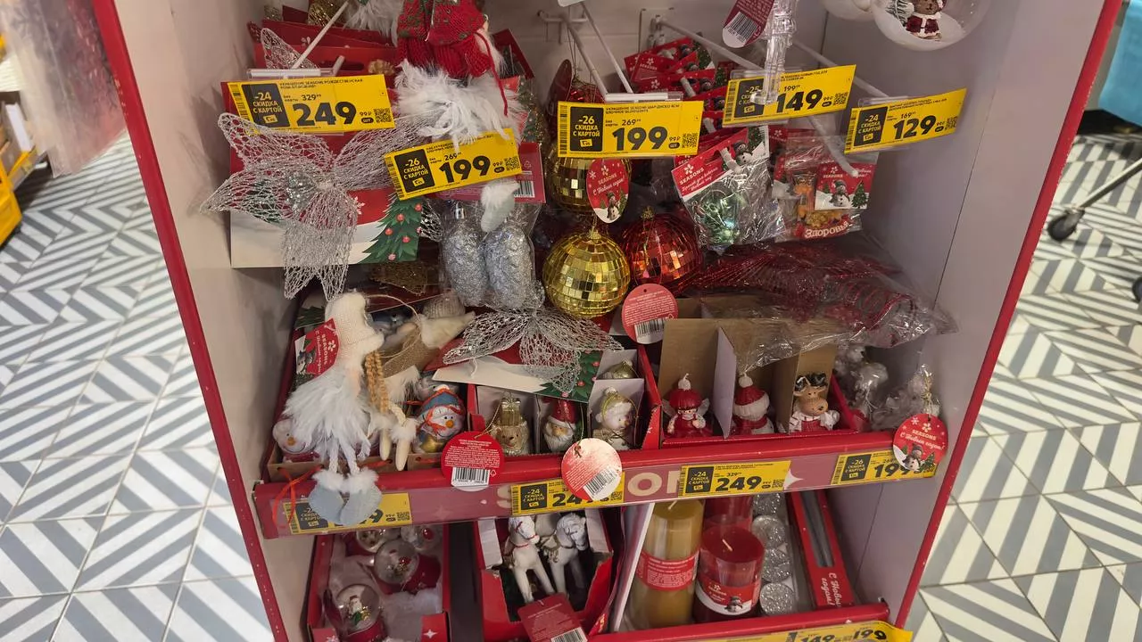 В магазине также представлено много новогодних украшений. Помимо мишуры за 139-199 рублей, можно найти елочные игрушки, статуэтки, наклейки и другие украшения.