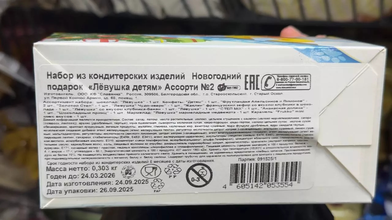 Также есть простой вариант сладкого набора конфет от "Левушки" за 299 рублей.
