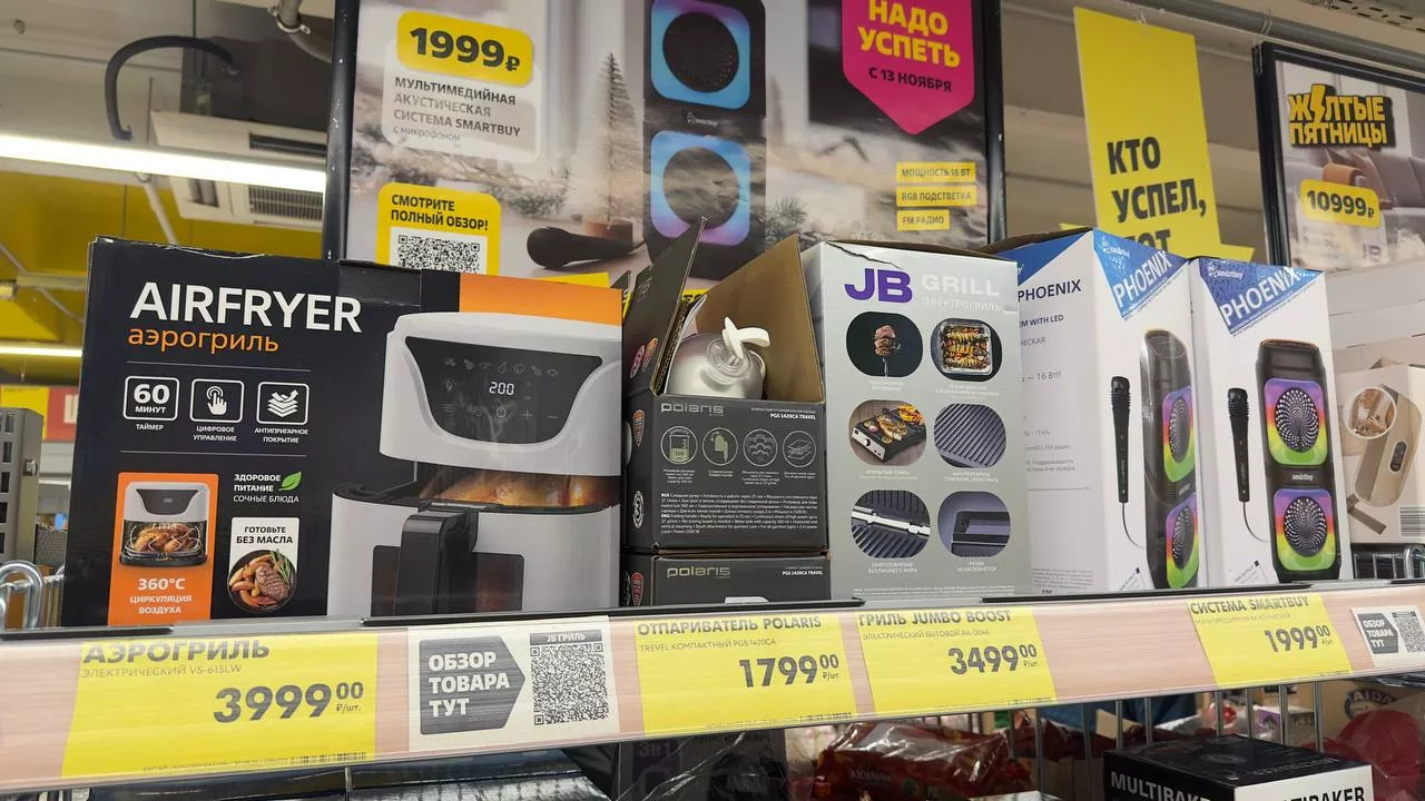 Также в магазине достаточно большой выбор бытовой техники: аэрогрили, пылесосы, вафельницы, выпрямители для волос, увлажнители воздуха и так далее.